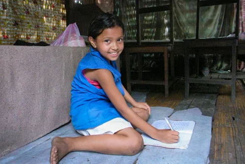 雖然沒有書桌,只在地上寫字,但可以上學,已覺得自己幸福。